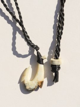 “Ancient Walrus Fish Hook” hand carved by Ray Peters, this stunning ivory fish hook has a twisted twine 18″ cord with an adjustable ivory ring at the top. The beautiful color in the ivory is the result of minerals that have been absorbed over hundreds and hundreds of years when it was buried in the Northern Bering Sea area. Not a great deal of this quality available today. No one has the ivory quality and outstanding craftsmanship of these rare pieces of functional art