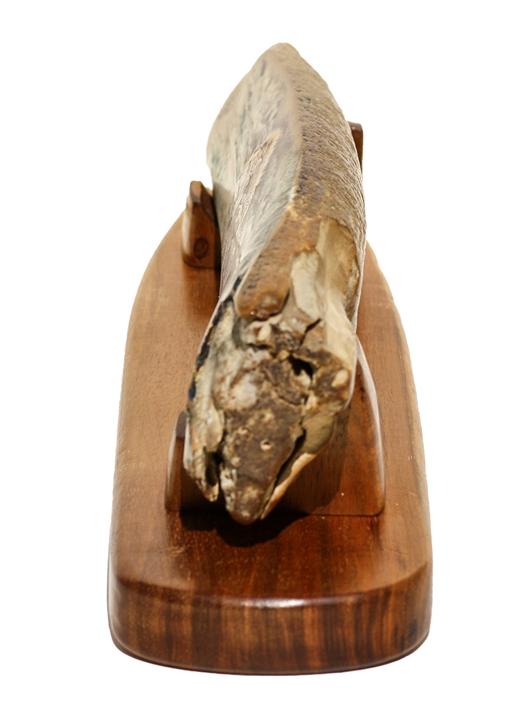 “King of the Serengeti” color scrimshaw on ancient walrus tusk ivory artifact by Gary Dorning. Considered to be the very best wildlife scrimshander ever, Dorning’s work is prized by collectors far and wide. The ivory was used as a ice axe by people in the Northern Bering Sea area hundreds of years ago. The word “Serengeti” is taken from the Maasai language and translates to “endless plains” or “a place where the land runs forever”. Dorning has captured that feeling with this amazing work. Not a great deal of Dorning’s work comes up for sale and most collectors are loath to part with his work. This is from the collection of one of our clients who is no longer with. He added this piece to his extensive collections decades ago, which is why the price is so reasonable for a Dorning.