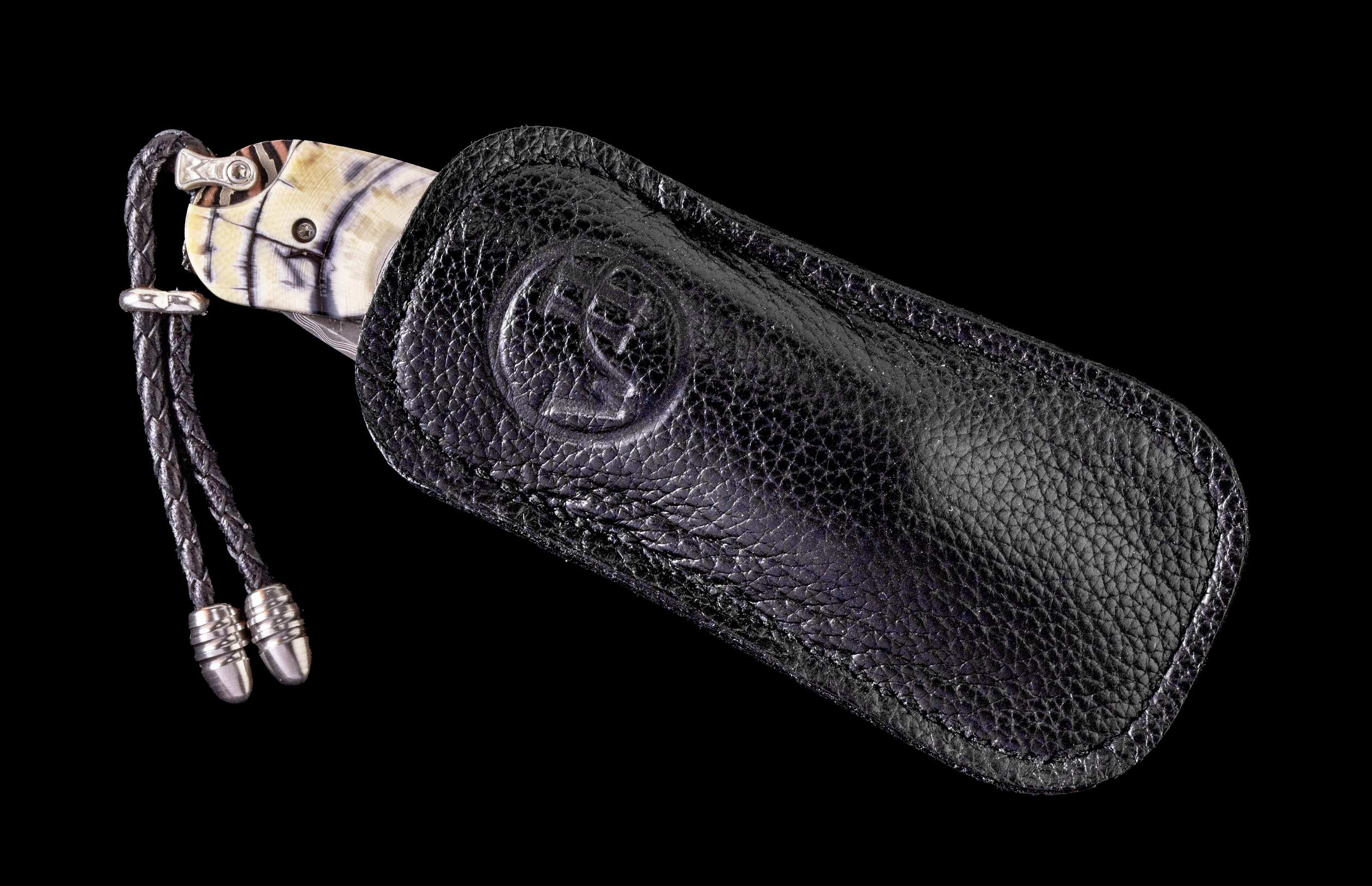 Every knife (with the exception of the all-titanium handle) includes our leather ClipCase and a braided lanyard with sterling or gold fittings to match. Each piece is engraved with two distinct numbers – a serial number on the blade and limited edition number on the leading edge of the handle. The numbers, along with the details about the knife’s construction, are listed in the included Certificate of Authenticity.